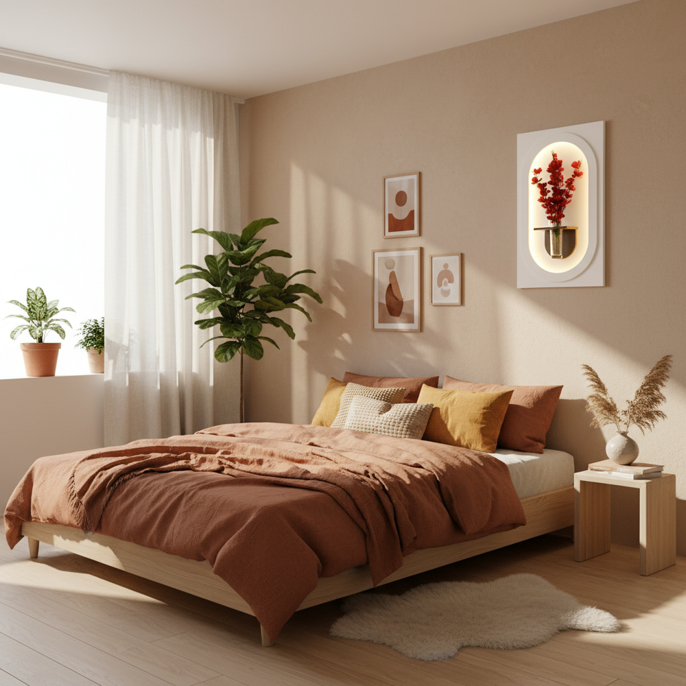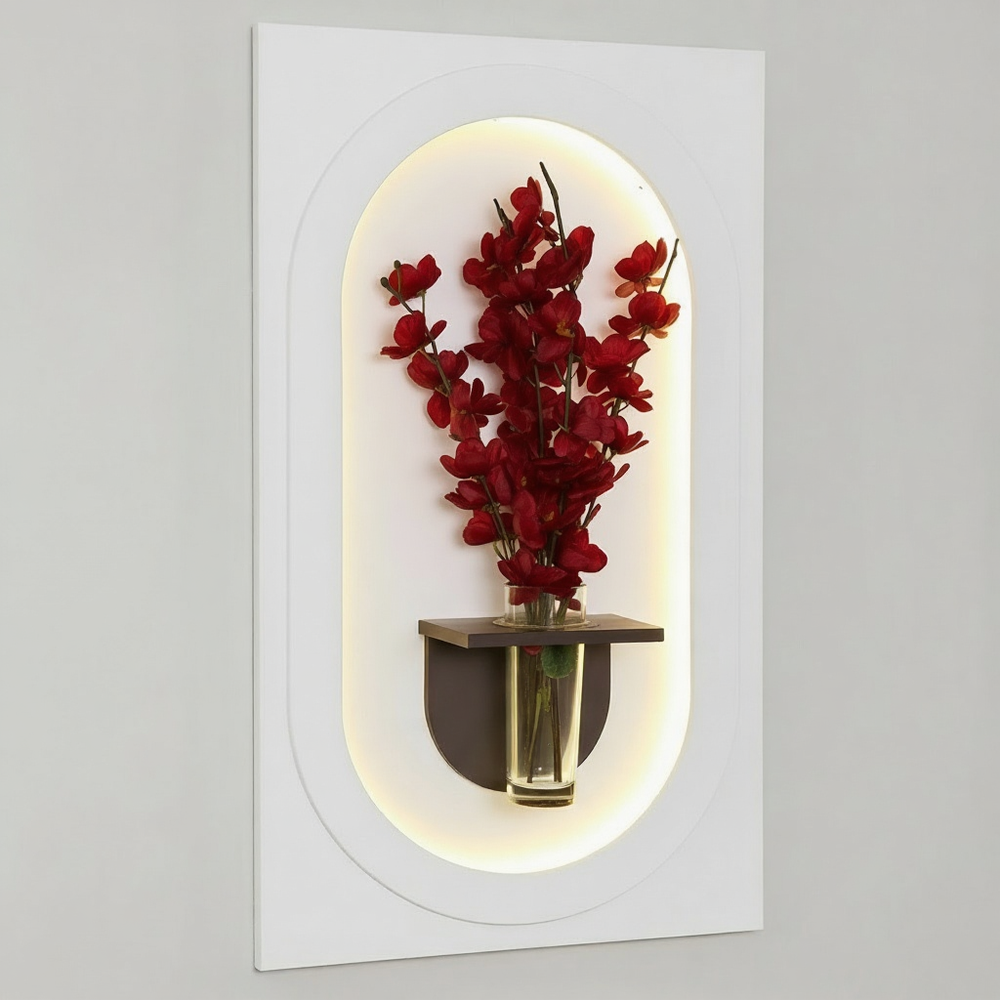 كل قطعة تُصنع يدويًا من خشب طبيعي فاخر، وتجمع بين ورود صناعية واقعية وإضاءة LED ذهبية ناعمة تُضفي على المكان جوًا راقياً ومريحاً.