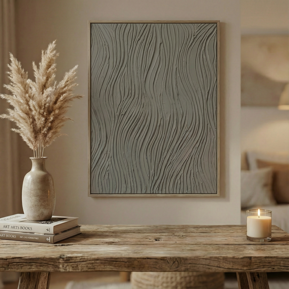 Elevate your interior with Silent Flow, a handcrafted textured wall art piece designed to add depth, movement, and understated elegance to your space.