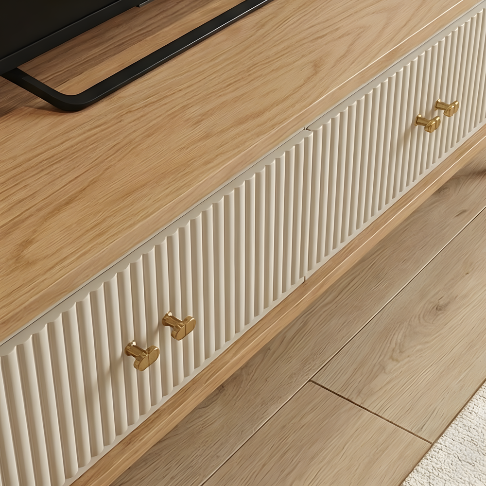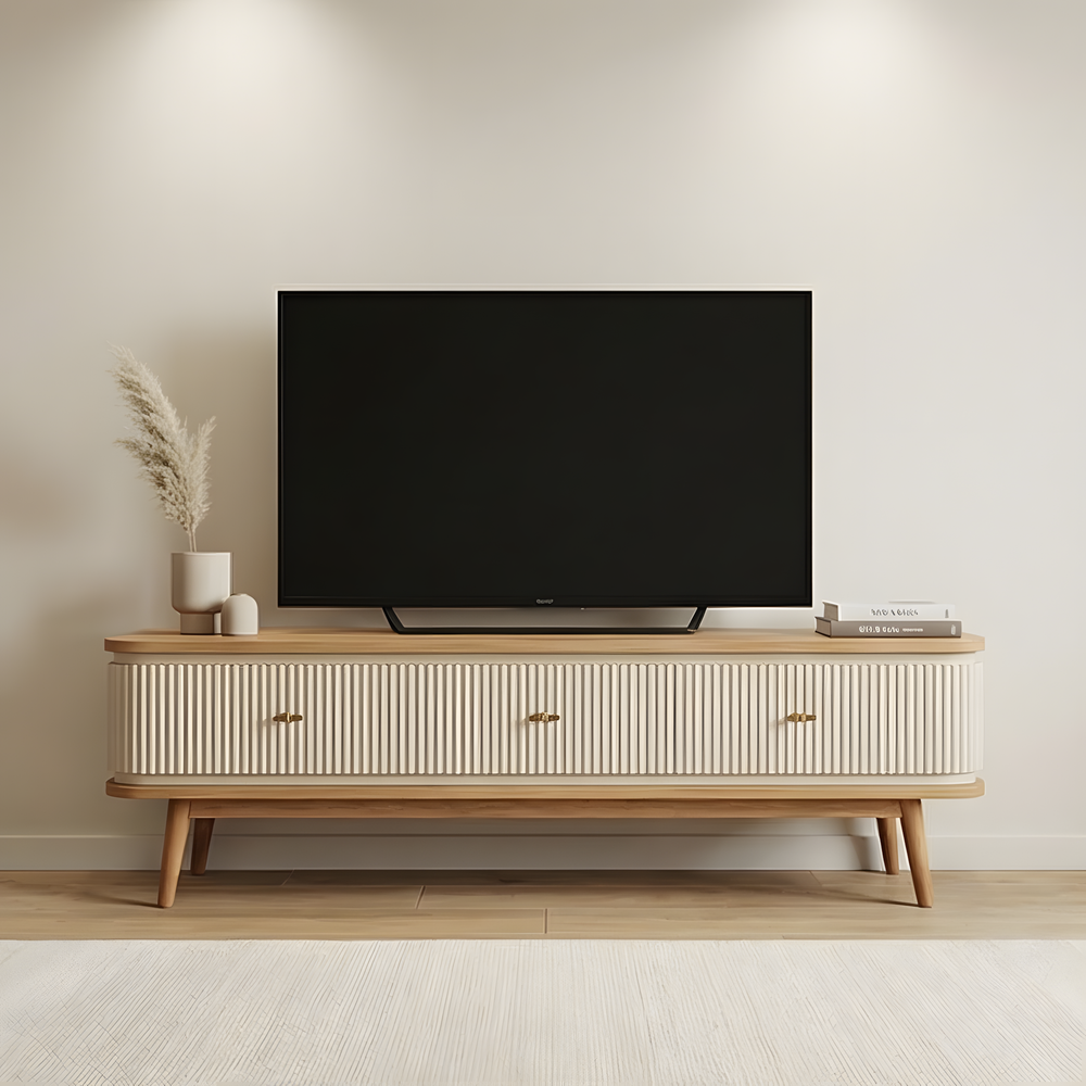Crafted entirely from carefully selected natural wood, this TV console is made to be a statement piece in your living room or reception area, adding warmth and a refined modern touch to your interior.